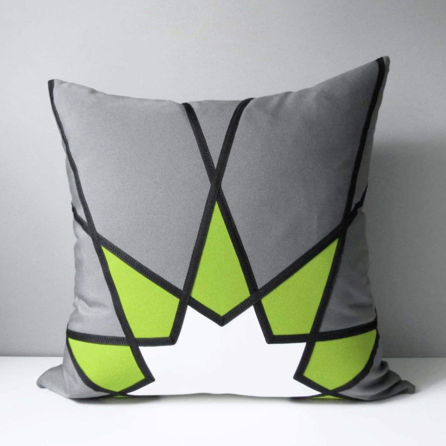 Modern Grey & True Blue Sunbrella Outdoor Pillow Cover, Geometric Cushions
