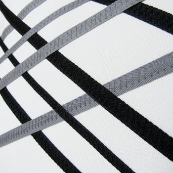 Decorative black, white & grey cushion cover sewn with meticulous trim detail intersecting each other. Crafted from Sunbrella indoor outdoor fabric ideal for poolside & patio spaces and active indoor spaces. Choose white, charcoal or black background.